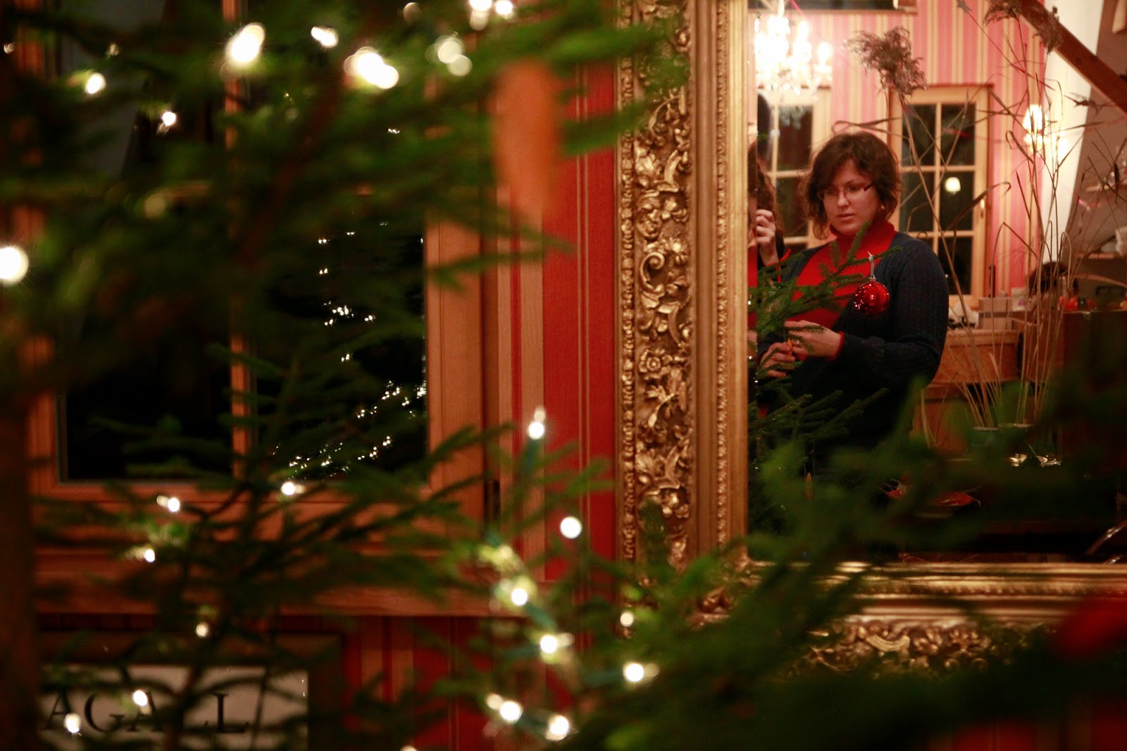 Żywą choinkę zastaliśmy, dekoracje za to są naszą zasługą. Ola przywiozła bombki i światełka, zrobiła pomarańcze, ja zaś przed laty koralikowe gwiazdki.