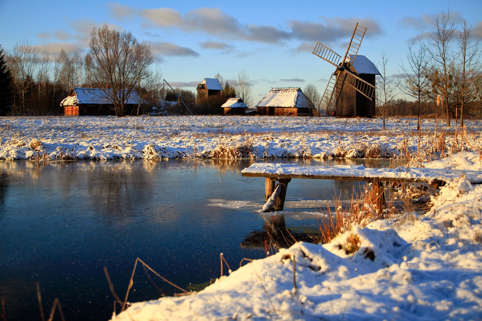 Odwiedzałam pięć lat wcześniej na wyprawie z Szymonem skansen architektury drewnianej, który jednak warto zobaczyć ponownie i w zimowej odsłonie. Wiatrak i drewniane chaty to główne atrakcje skansenu.