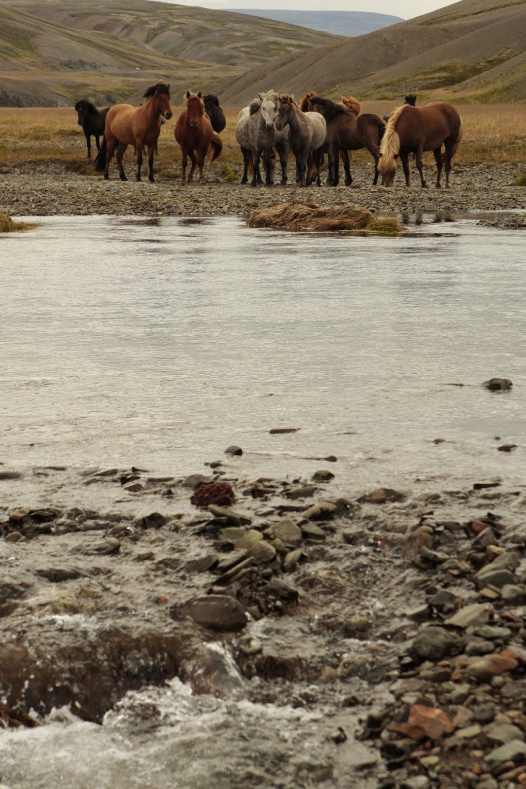 W głębi Islandii, gdzie morze nie sięga, krajobraz dominują góry w spektakularnych o tej porze roku kolorach. Konie, mimo że hodowane, pasą się po królewsku na ogromnych przestrzeniach wolnego i czystego powietrza; zdają się być wolnymi i dzikimi.