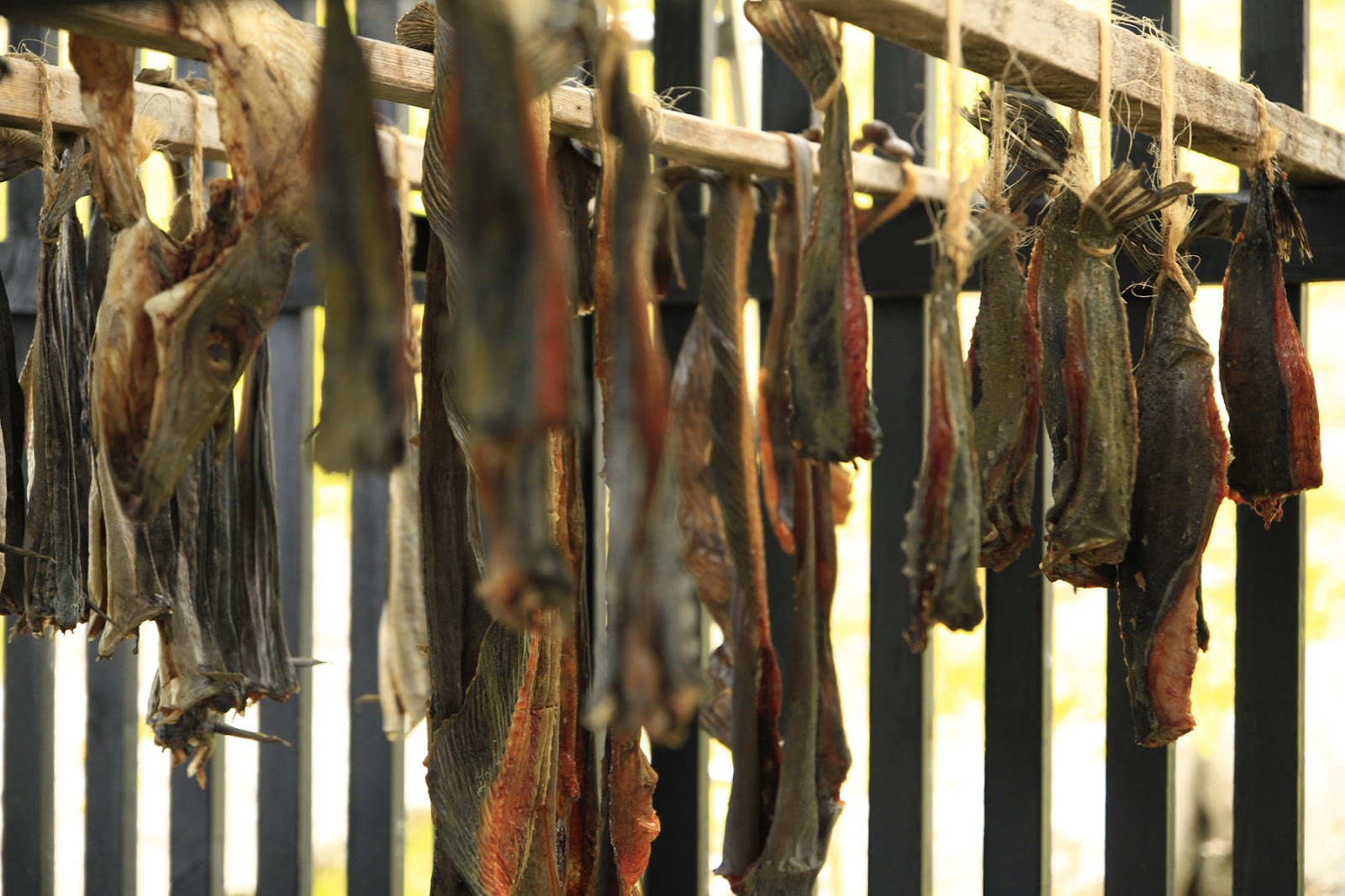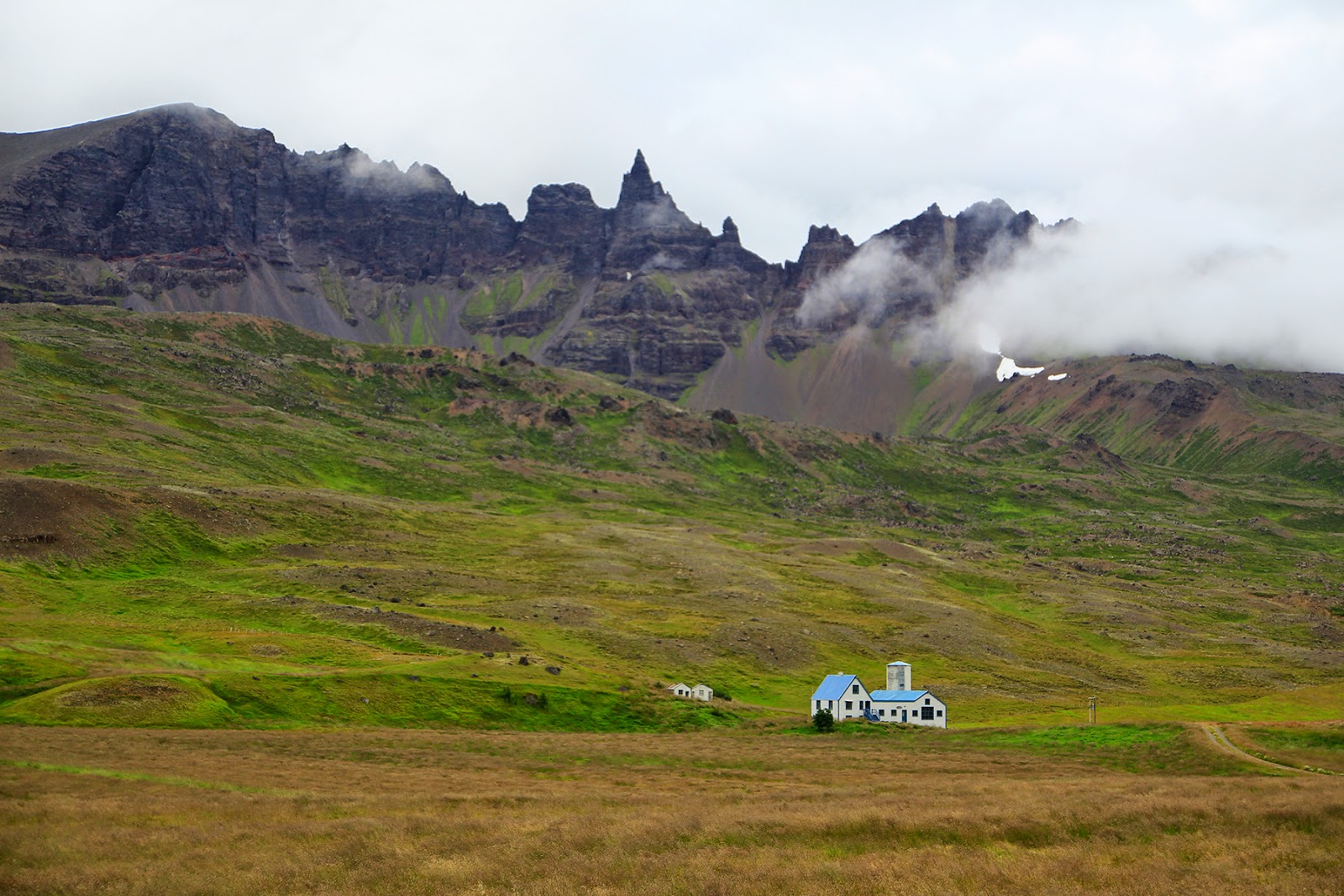 Ten powtarzający się na Islandii rodzaj zabudowy – domy o luźno rozstawionych deskach – okazuje się być suszarnią ryb słonowodnych. Tradycyjną metodą rozwiesza się je na belkach i wystawia na działanie wiatru.