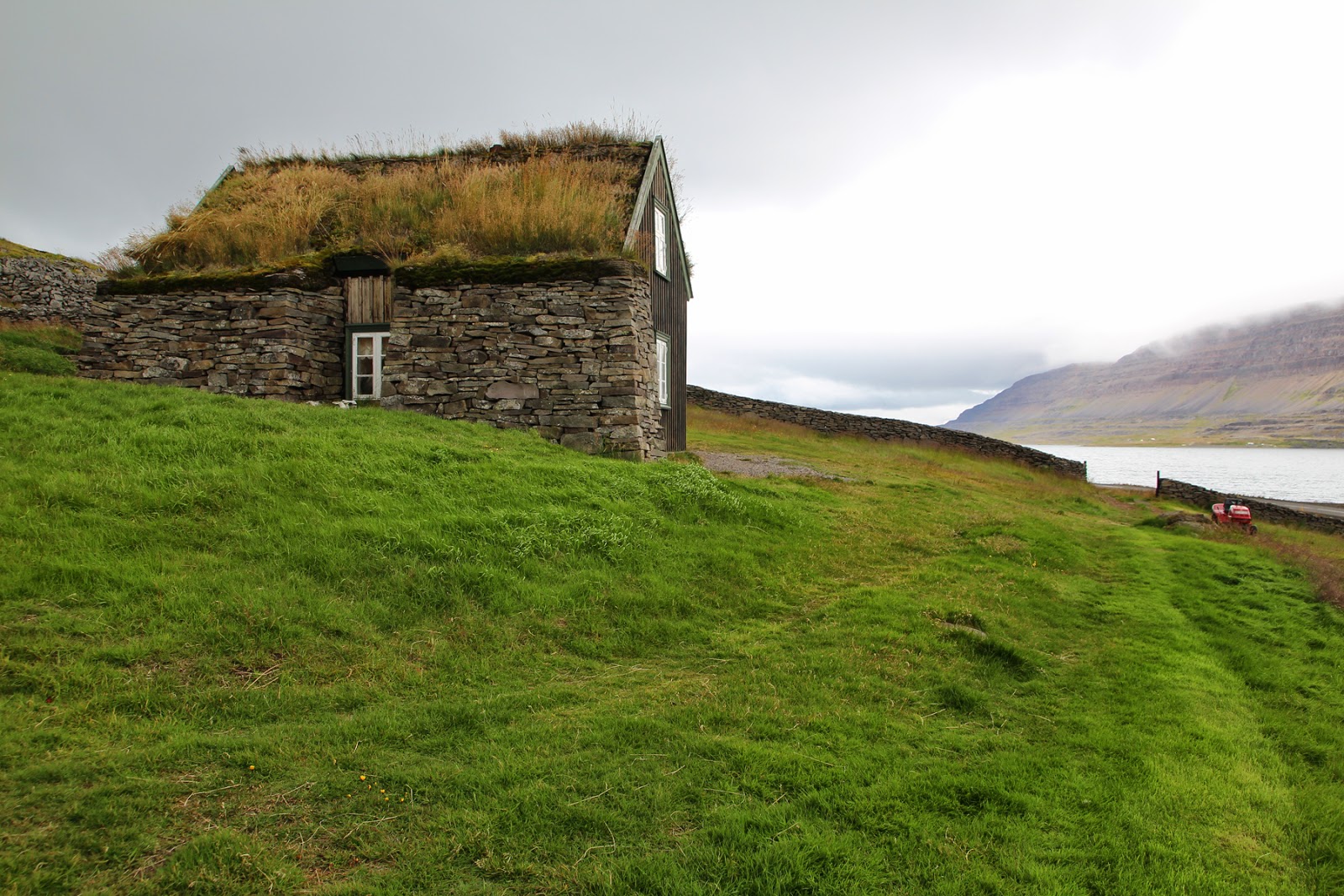 Na Islandii trawa rośnie bardzo szybko i gęsto. Dachy farmy są w efekcie mieszaniną korzeni i gleby. Były nie lada wyzwaniem dla budowniczych, gdyż pochylenie musi mieć idealny kąt – jeśli dach jest zbyt płaski, woda przecieka do wnętrza, jeśli za stromy, spływa niedostatecznie nawadniając trawę, przez co kiepsko rośnie i dach jest nieszczelny.