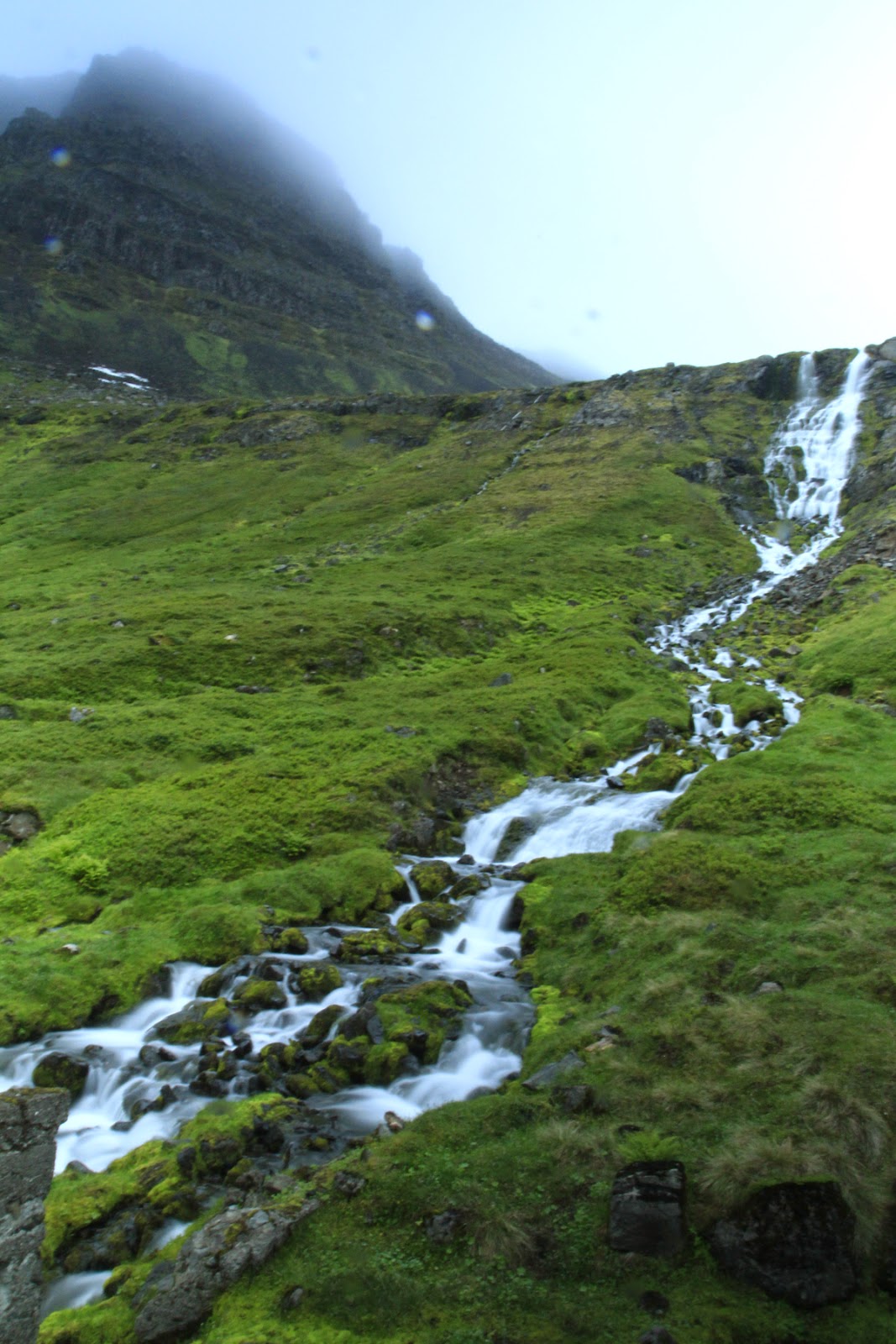 Tuż pod Suðureyri postanowiliśmy wspiąć się na dziko w górę jakże typowego strumyku z mini-wodospadami.