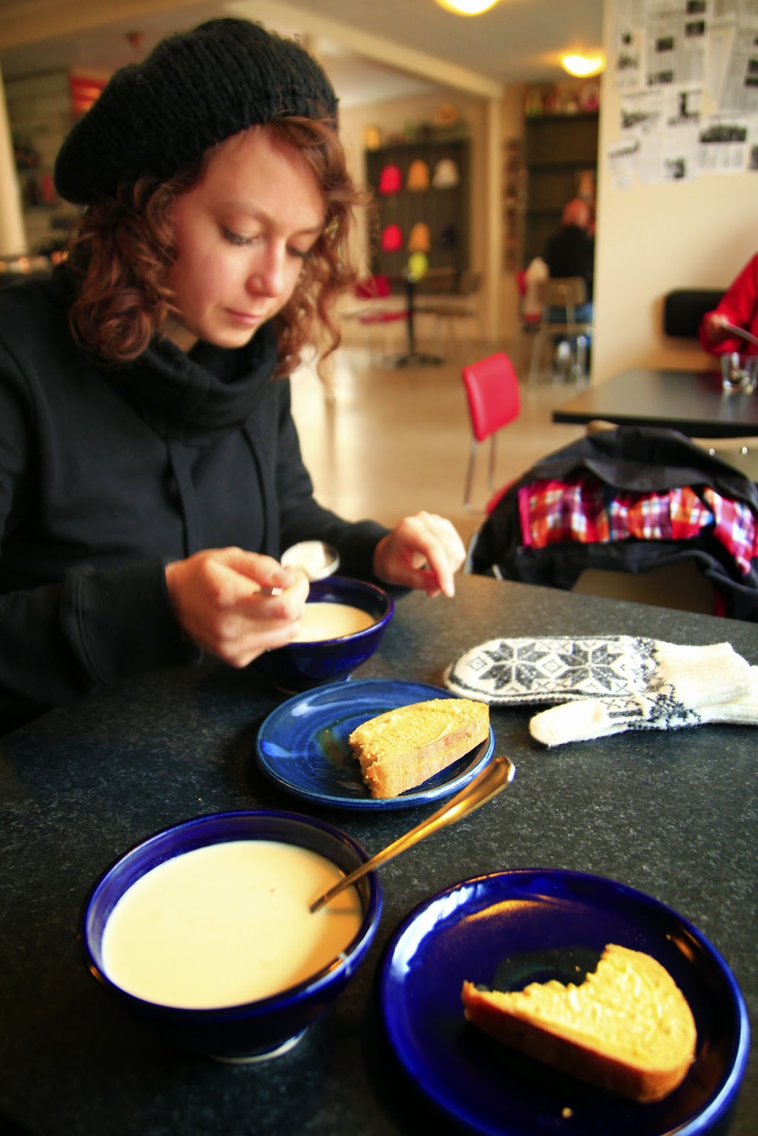 Islandzka klasyka obiadowa pod postacią zupy dnia – zawsze dostępnej w wielkich wazach, podawanej z pieczywem i masłem o rozbrajającej islandzkiej nazwie smjör.