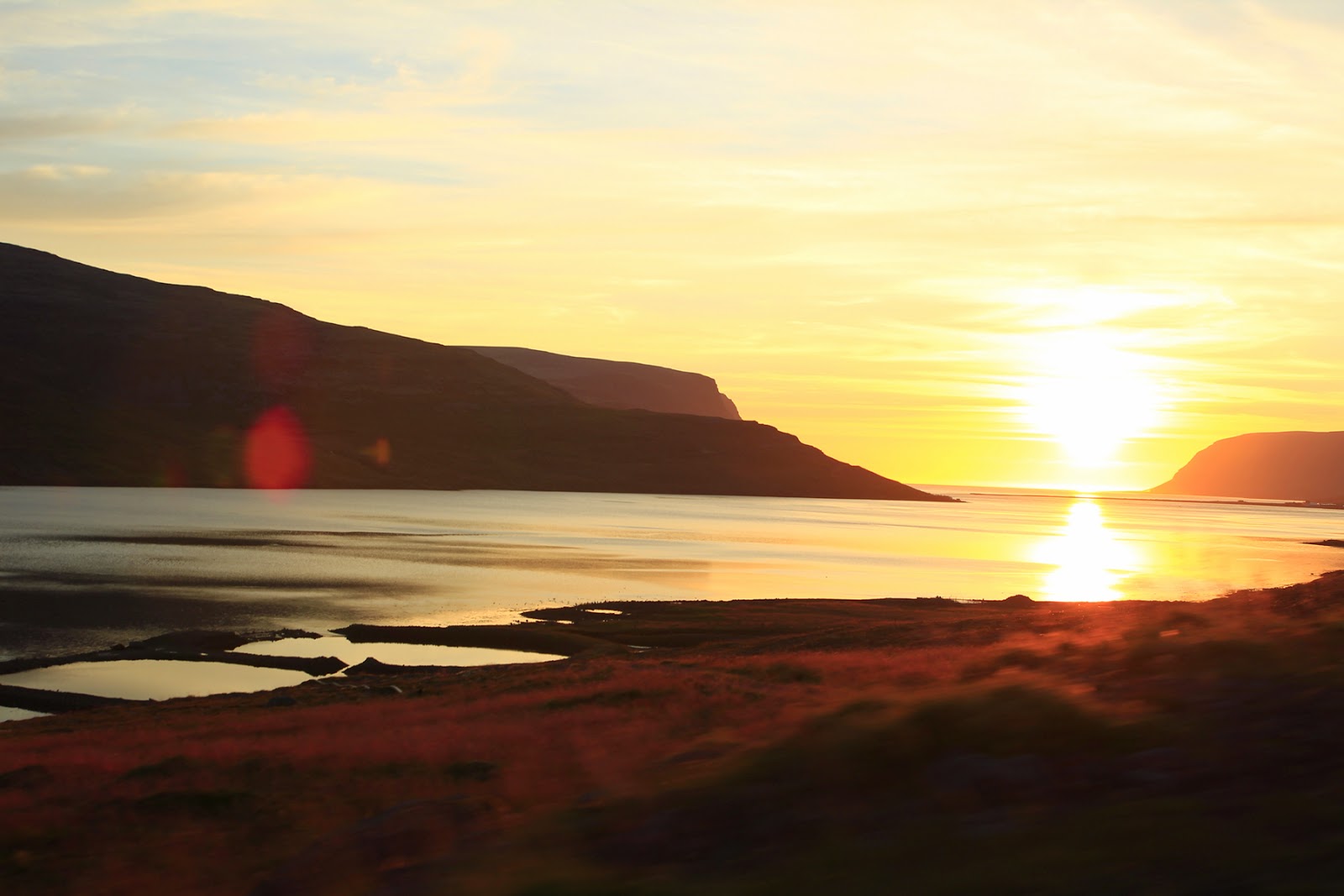 O tej porze roku na Islandii dzień trwa i trwa. Zegary biologiczne przez pierwsze dni mogą wariować. Ciemno robiło się dopiero w okolicach godziny 23! Gdy wzdłuż fiordów jeździliśmy wieczorową porą, słońce spektakularnie chowało się za poszczególnymi masywami w swojej drodze na dół.