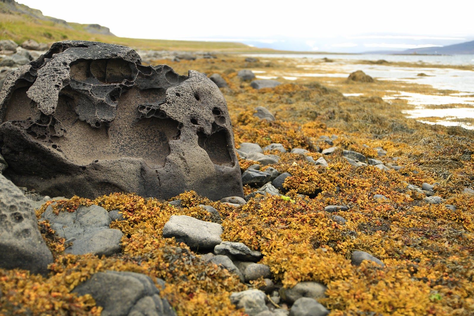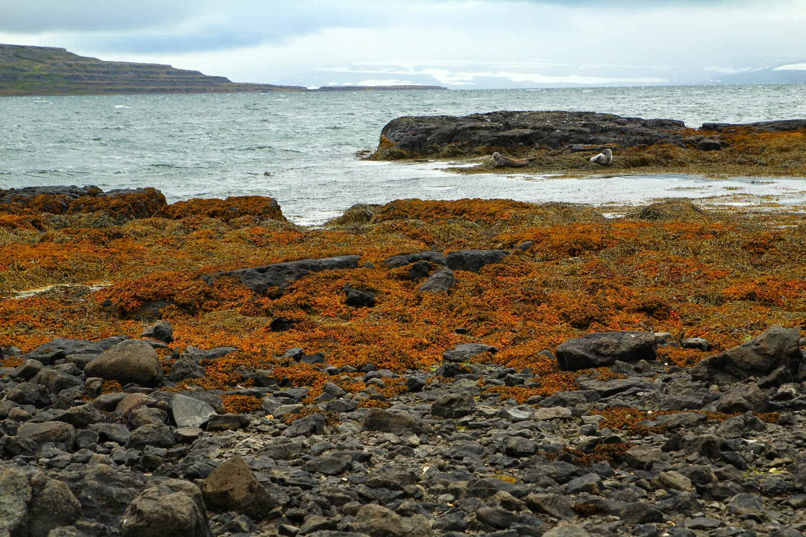 W poszukiwaniu fok zeszliśmy do poziomu przypływowego. Wilgoć budzi tu do życia wiele gatunków roślin i rozmaitych żyjątek, należy ostrożnie stąpać po tych obślizgłych i podstępnych brzegach.